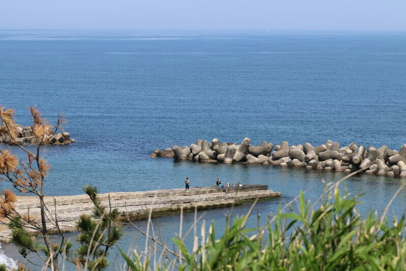 崖の下には釣り人も